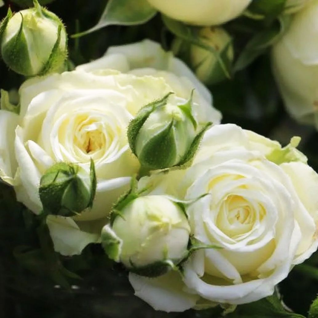 Роза Спрей белый купить по цене от 420.00р. в интернет-магазине «Посадика» с доставкой почтой в в Москве и по всей России – [изображение №1].